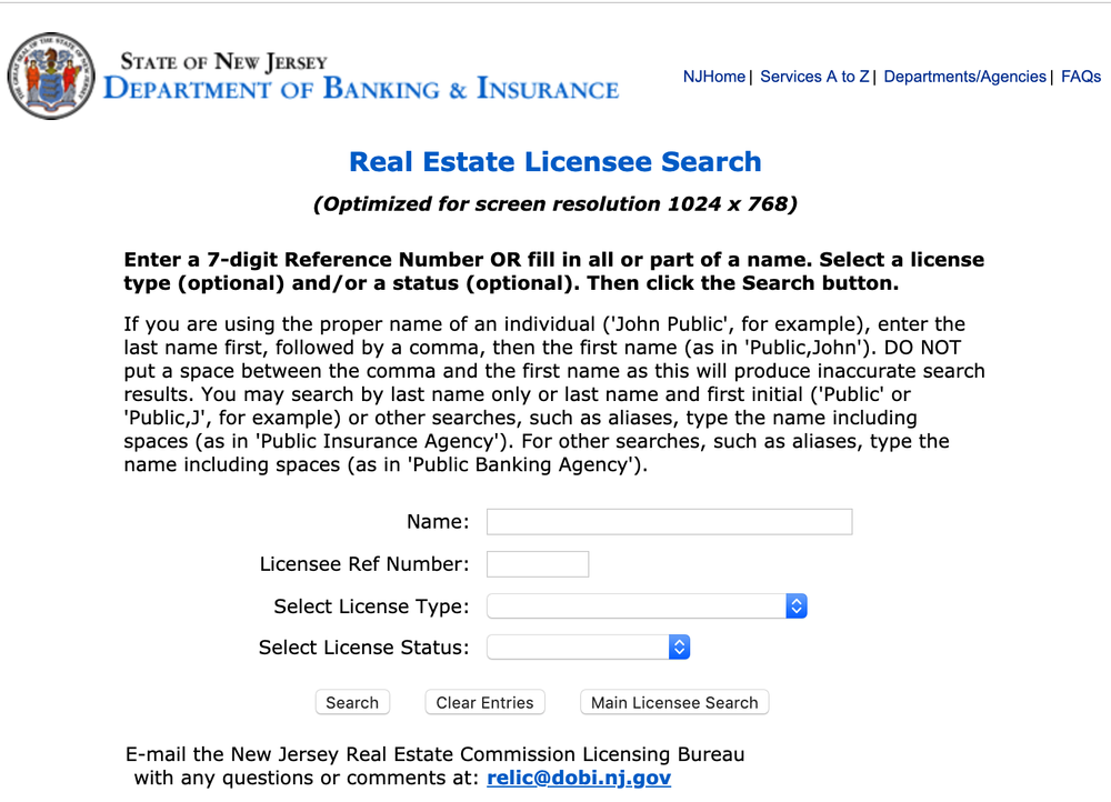 Fortunately, the State of New Jersey publishes information online about all licensed real estate agents. Here’s how to check your license status: